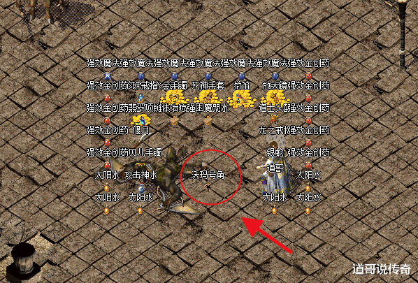 这件道具就是沃玛号角,如上图所示,这就是沃玛号角的高清还原图,从名字和外观相信大家都不难想到其出处。作为沃玛教主的专属产出道具,它和其他装备不一样,大家见到沃玛教主就能见到号角,因为它就是用沃玛教主头上的双角制成的。在各类功能性道具中,沃玛号角算得上来源高端大气了。
