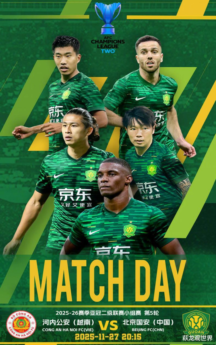 北京时间11月27日晚20:15,亚冠二级联赛小组赛第5轮一场焦点大战,北京国安做客河内行待体育场挑战河内公安(越南),爱奇艺体育、咪咕体育等网络平台进行直播。目前两队同积5分,此役是两队争夺出线权的关键一战,看看北京国安能否在足协杯决赛之前,拿河内公安队祭旗!