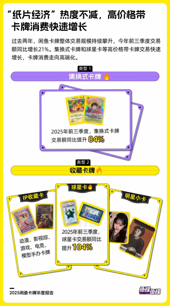 “闲鱼卡牌年度报告数据反映出国内消费者对卡牌的热情依然保持,但消费行为正趋于理性与成熟。”闲鱼二次元与泛娱乐行业总经理雪海表示,现阶段消费者更愿意为优质IP内容付费,也更加关注卡牌的收藏价值与二级市场保值潜力。随着原创IP内容不断丰富、卡牌交易生态日益完善,卡牌行业将朝着健康可持续的方向发展。